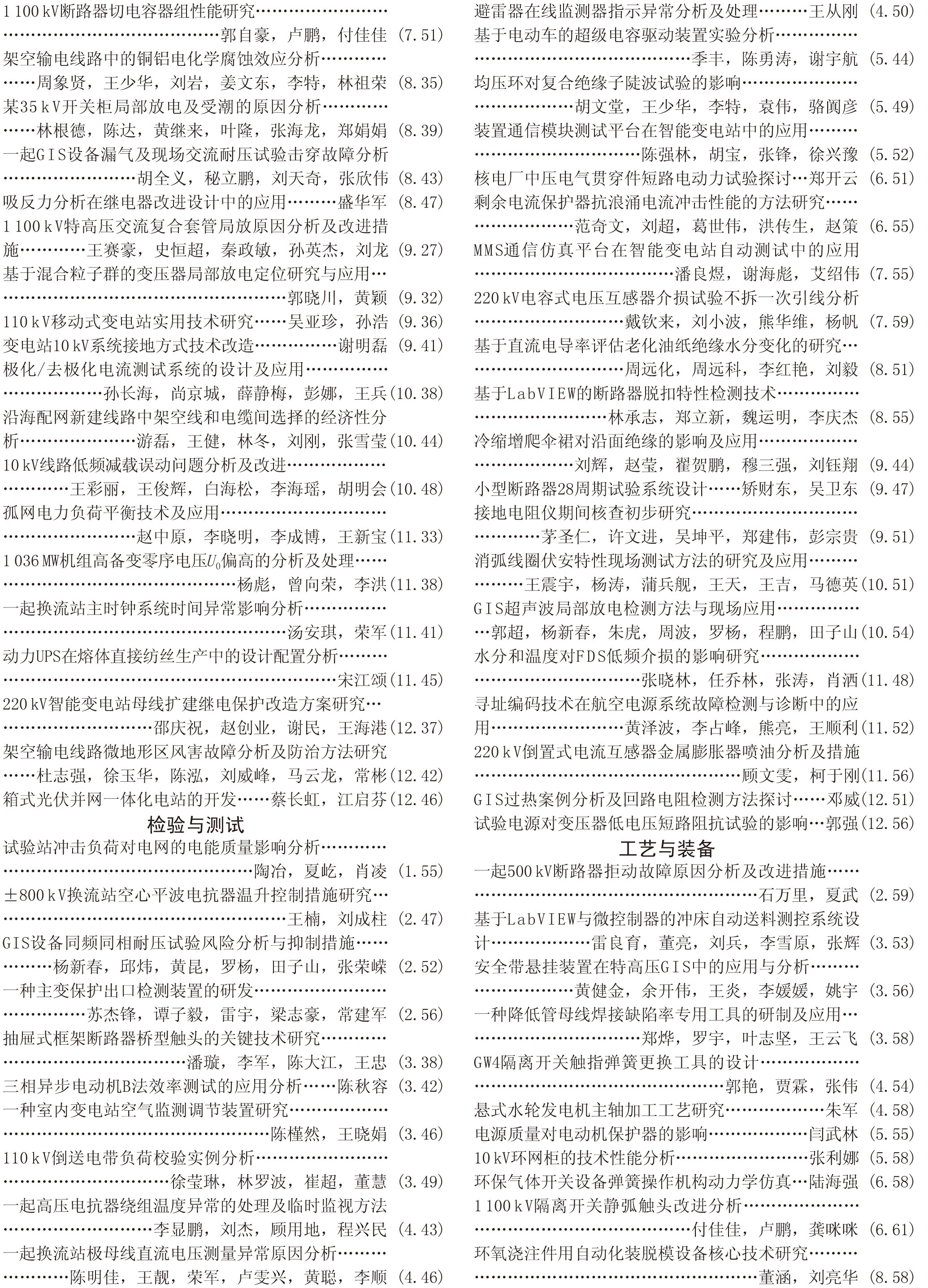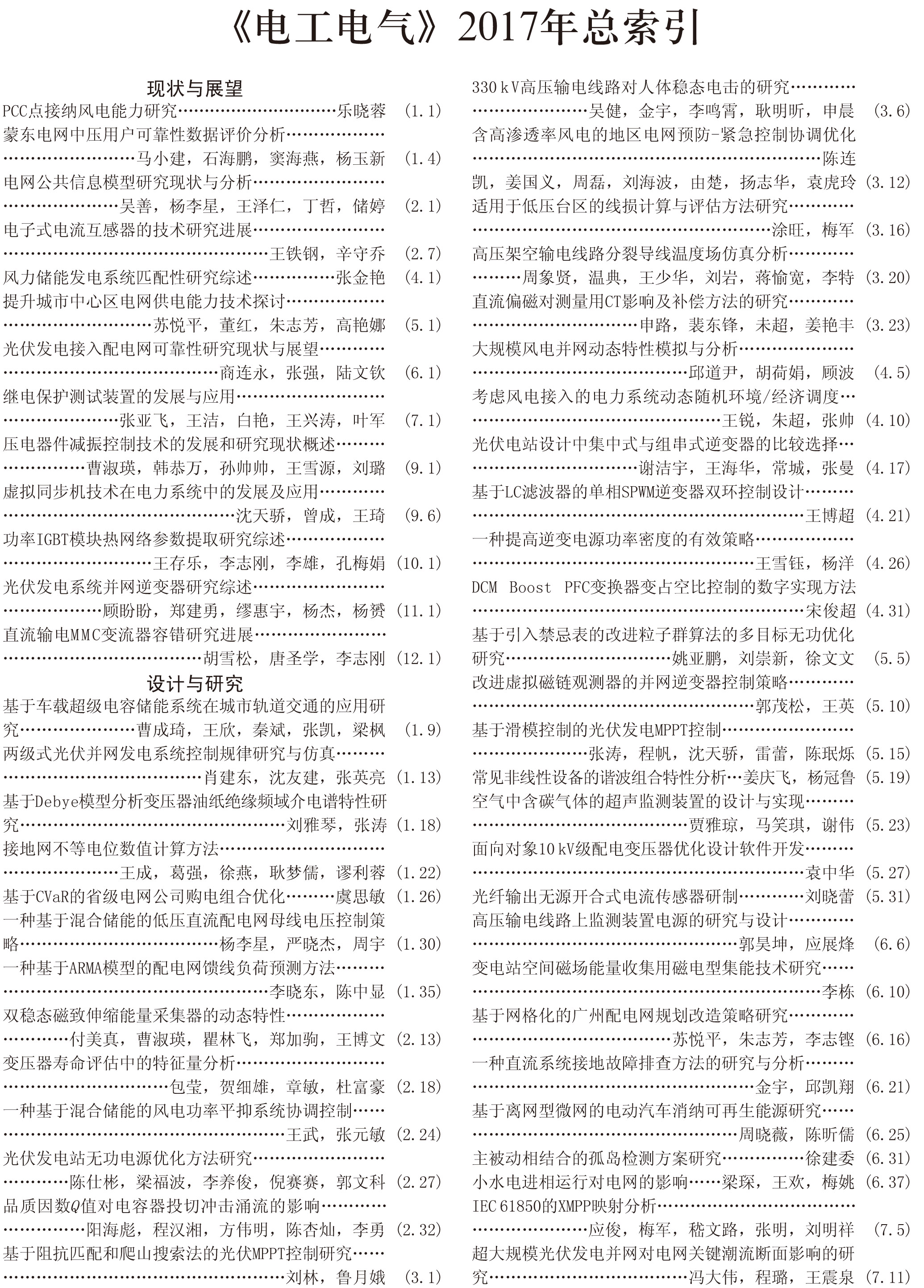《電工電氣》2017全年總索引具體刊文如下